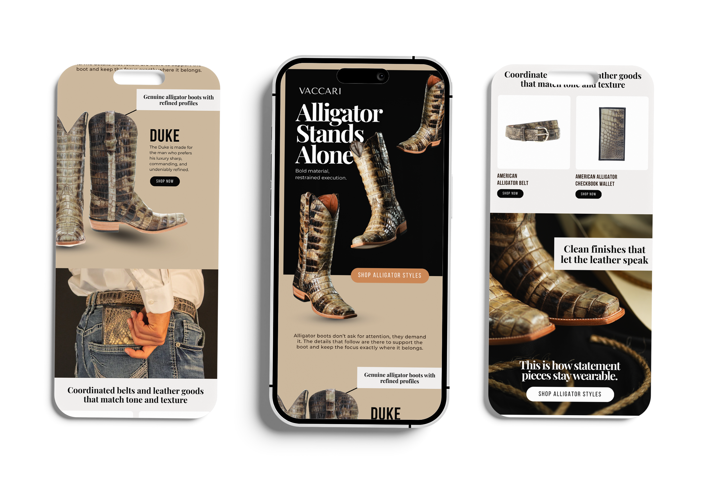 Emails created for various marketing campaigns for Vaccari Boots.